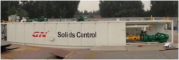 一個40英尺集裝箱大小的泥罐設計有足夠的空間進行泥漿的回收及儲存,2臺50HP的 GNSB6x5-12型離心泵,其中一臺是用于輸送泥漿到去除泥器,而另一臺用于混漿
