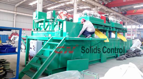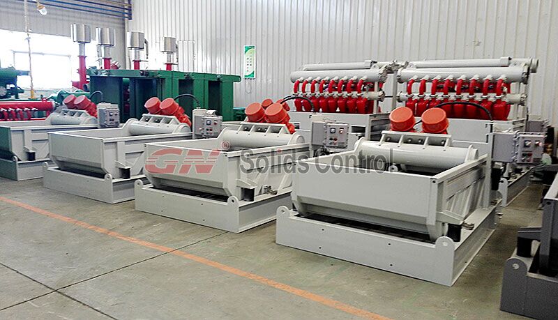 2. 一級分離設備:雙層振動篩。擁有上下兩層篩網的鉆井液振動篩:一層粗篩網可以將粗顆粒進行分離,第二層細篩網可以將泥漿中更為細小的顆粒進行篩除。剩下的泥漿進入臥螺式沉降離心機進行進一步凈化分離。